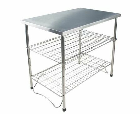 Кемпинговый стол Winnerwell Camping Table High Set Удобный стол из нержавеющей стали Winnerwell Camping Table High Set отлично подходит для кемпинга, пикника, полевой кухни или дачи. Разборная конструкция позволяет столу занимать минимальный объем в сложенном состоянии, что особенно удобно для его перевозки и хранения. Стол быстро собирается и разбирается, не ржавеет, очень прочный, легко моется, прекрасно выдерживает уличные условия эксплуатации. В комплектацию включены две полки для хранения кухонных принадлежностей и посуды. Одна из полок снабжена складными ножками и может использоваться отдельно. Характеристики: Материал: нержавеющая сталь AISI 304; Размер транспортировочный: 850 x 540 x 75 мм; Размер в установленном виде: 850 x 540 x 755 мм; Вес: 10,7 кг.