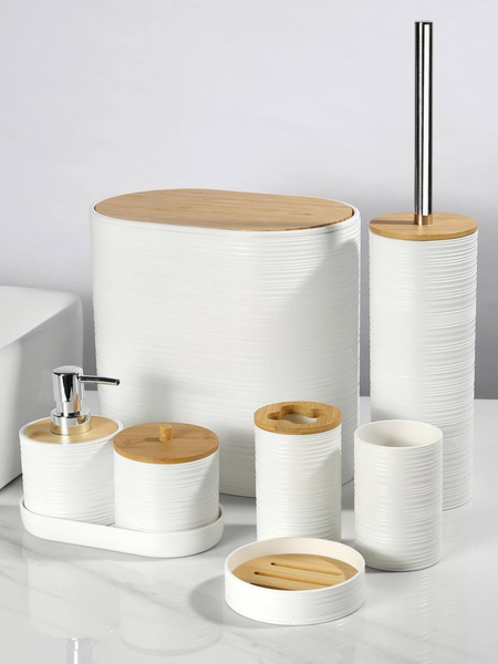Этот набор из 6 керамических аксессуаров для ванной сочетает стиль и функциональность. Предметы изготовлены из прочной керамики, устойчивают к воздействию влаги и долговечны. Благодаря различным элементам — дозатору, мыльнице, подставкам для щёток и других мелочей — вы легко организуете порядок в ванной комнате. Чёрный цвет гармонирует с современным интерьером. Отличный выбор для дома, гостиницы или салонного пространства. Набор: 6 предметов из керамики Цвет: чёрный Материал: качественная керамика Для гигиенических принадлежностей Добавляет порядок и стиль в ванную Лёгкий уход и очищение
