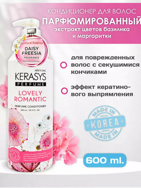 Кондиционер Kerasys "Lovely & Romantic", для всех типов волос, с ароматом розы, 600мл