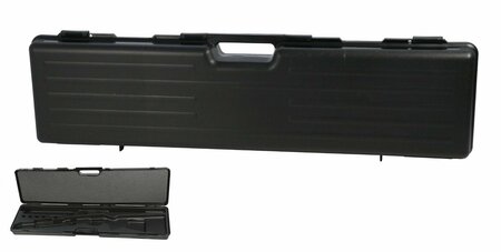 Предназначен для хранения и транспортировки охотничьего оружия в разобранном виде. Кейс изготовлен из черного пластика ABC толщиной 2 мм. Внутри кейса на верхней половинке, находится наполнитель – поролон, толщиной 5 см. А в нижней половинке имеется специальная термоформа для удобного размещения оружия и аксессуаров в кейсе. Две половинки кейса соединяются между собой шарнирными петлями, которые изготовлены в едином корпусе с кейсом и соединяются 2 мм шпилькой. Закрывается/открывается кейс 4 удобными пластиковыми, скользящими замками-защелками. Замки надежно закрывают кейс и не позволяют ему открыться даже при сильных ударах и тряске. Переноска кейса осуществляется за крупногабаритную пластиковую ручку. Хорошую устойчивость кейсу придают пластиковые ножки. Все материалы применяемые в производстве кейса не подвержены коррозии, не испаряют вредные вещества и не меняют своих свойств и размеров в зависимости от температуры. Характеристика кейса: