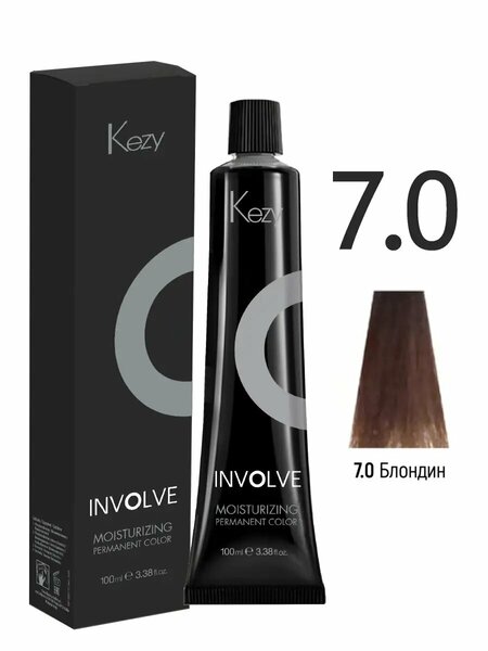 Перманентная краска для волос KEZY Involve 7.0 Блондин, 100 мл Мягкая увлажняющая крем-краска для волос с антиоксидантным MFA комплексом в составе обеспечивает равномерное проникновение красящих пигментов в пористые участки волос. Позволяет получить одинаково плотный от корней до кончиков максимально насыщенный цвет. 146 процентное закрашивание седины. Ухаживающие компоненты- запатентованный MFA комплекс на основе фруктовых экстрактов. Активные компоненты - экстракт красных водорослей, камелии и зеленого чая, фруктовые кислоты, масло ши, алое вера. Страна бренда: Италия Объем: 100.0 мл Тип волос: для всех типов Средство: краска Текстура: крем Применение: смешайте краску с окисляющей эмульсией(оксидом) для крем-краски Cream Developer INVOLVE 3%, 6%, 9% или 12%. Не содержит парабенов. Масла и экстракты: экстракт зеленого чая, экстракт красных водорослей, экстракт яблока.