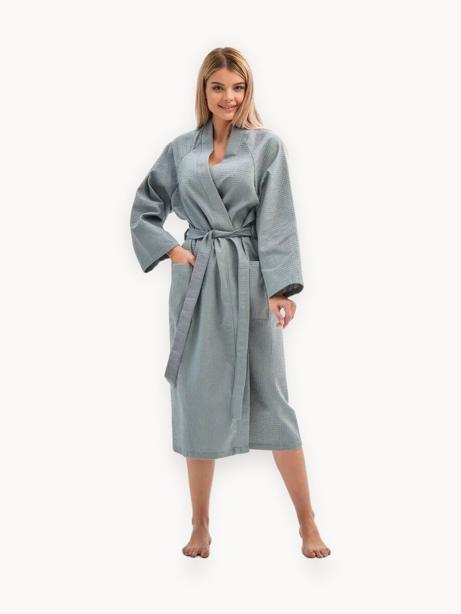 Легкий и теплый хлопковый халат кимоно идеально подходит для дома, бани и сауны. Этот банный текстиль с коротким рукавом создан из натурального хб материала, который обеспечивает комфорт и приятное ощущение на коже. Модель на запах отличается удобным поясом и широкими рукавами, что делает его практичным выбором для женщин всех возрастов, включая бабушек. Длинный или короткий вариант этого халатика подойдет для осенней и зимней поры, позволяя сохранять тепло после душа или посещения бассейна. Благодаря вафельной структуре ткани изделие хорошо впитывает влагу и быстро сохнет, создавая уютную атмосферу в любое время года. Такой домашний халатик станет надежным спутником в прохладные дни, защищая от холода и поддерживая комфорт. Большие размеры обеспечивают свободу движений и удобство во время отдыха на дому или после процедур в бане. Материал не вызывает раздражений, поэтому этот красивый женский халат отлично подойдет для чувствительной кожи. Его стильный крой гармонично сочетается с функциональностью, делая изделие универсальным выбором как для повседневного использования, так и для отдыха в сауне. Этот текстильный аксессуар помогает создать расслабляющую атмосферу после водных процедур, дарит ощущение уюта и тепла. Хлопок высокого качества гарантирует долговечность изделия при частых стирках без потери внешнего вида и свойств ткани. Используйте этот банный халат кимоно зимой и осенью на все случаи жизни — дома после душа, в бане или бассейне — чтобы сохранить комфорт тела. Поддерживайте тепло после парной или купания с помощью этого легкого домашнего халатика из натурального хлопка. Он сочетает в себе практичность классического дизайна кимано с современными требованиями к текстилю для бани: отсутствие синтетики, высокая гигроскопичность и хорошая воздухопроницаемость. Ваша забота о себе будет дополнена этим удобным предметом гардероба для отдыха.