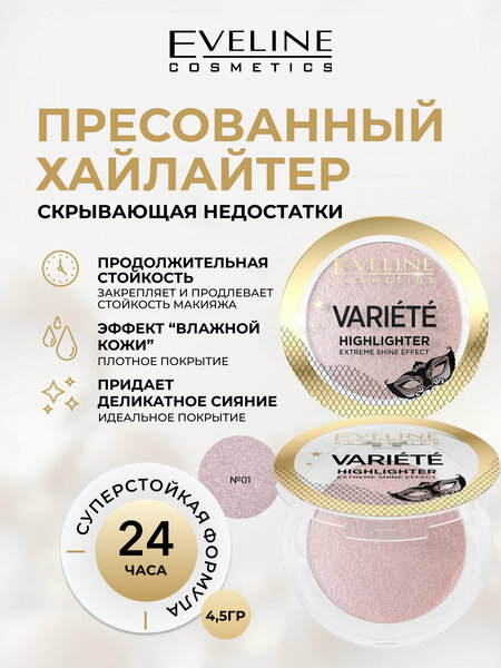 Хайлайтер для лица Eveline VARIETE сухой сияющий прессованный № 01