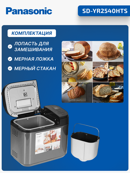 Хлебопечь Panasonic SD-YR2540HTS - это незаменимый помощник на кухне, разработанный с учетом более чем 34-летнего опыта и передовых технологий. Мощность хлебопечи составляет 550 Вт, что гарантирует быстрое и качественное приготовление хлеба. Особенностью данной модели является наличие 30 программ выпечки, что позволяет приготовить практически любой вид хлеба - дрожжевой, малодрожжевой, бездрожжевой, без глютена, хлеб на закваске. Также в хлебопечи предусмотрены 4 программы для приготовления без глютена. Уникальная технология замеса теста, используемая в профессиональных пекарнях, позволяет наслаждаться свежим и хрустящим хлебом каждый день. Хлебопечь оснащена диспенсером для дрожжей и дополнительных ингредиентов, что обеспечивает точное соблюдение процесса выпечки хлеба и вкусный конечный результат. Съемная чаша и возможность выбора цвета корочки делают процесс приготовления хлеба еще более удобным и приятным. В комплекте с хлебопечью идут мерный стакан и ложечка, что позволяет сразу приступить к приготовлению хлеба. Защита от перегрева и блокировка крышки обеспечивают безопасность использования хлебопечи. Выбирая хлебопечь Panasonic SD-YR2540HTS, вы получаете надежного помощника на кухне, который позволит вам наслаждаться свежим и вкусным хлебом каждый день.