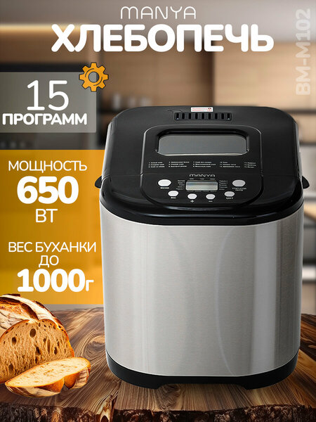 Хлебопечка с замесом теста 15 программ MANYA BM-M102 автоматическая с функцией йогурт