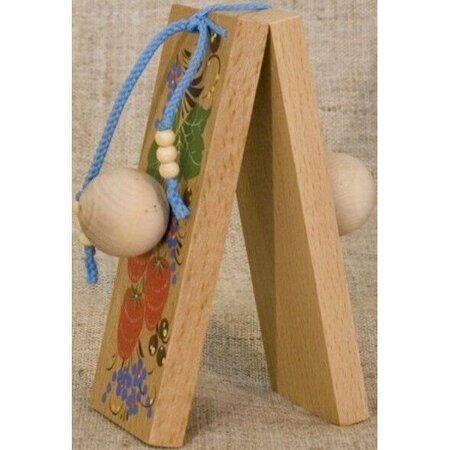 к2-хл-01 Хлопушка, Мастерская Сереброва. Хлопушка состоит из двух деревянных пластин, скрепленных полимерным шнуром.