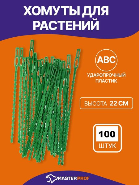 MasterProf Подвязка для растений,100шт Предназначены для закрепления растения на опорах, легко изменяется в диаметре и не препятствует росту растения. Длина хомута: 22 см. В комплекте: 100 шт. Хомуты для растений Masterprof: надежность и удобство использования Прочность и долговечность Хомуты для растений Masterprof изготовлены из высококачественного пластика, что обеспечивает их прочность и долговечность. Благодаря этому, вы можете быть уверены в надежности и долговечности этих опор для растений. Легкость в использовании Хомуты легко изменяются в диаметре, что позволяет адаптировать их под различные размеры растений. Это делает их удобными и простыми в использовании, позволяя вам без труда закрепить растение на опоре. В комплекте 100 штук В наборе вы получаете 100 хомутов для растений, что позволяет вам с легкостью обеспечить поддержку для большого количества растений на вашем участке. Преимущества использования хомутов для растений Использование хомутов для растений Masterprof поможет вам поддерживать здоровье и красоту ваших растений, обеспечивая им надежную опору и защиту от ветра и других погодных условий.