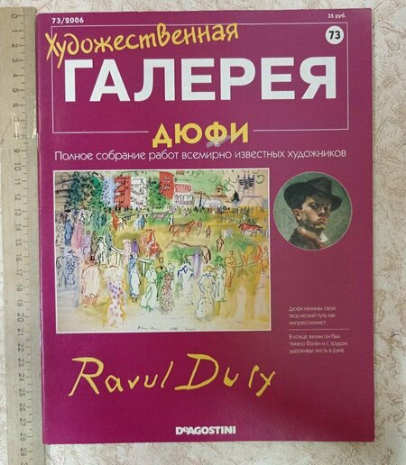 Журнал "Художественная галерея. Дюфи" (№73, 2006 год) посвящен французскому художнику Раулю Дюфи, считающемуся одним из главных представителей движения "неоионизма" в конце XIX — начале XX века. Издание ориентировано на популяризацию творчества художника, широко известного своей особой живописной техникой и ярким цветом.