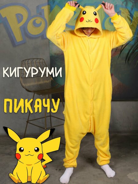 Кигуруми это многофункциональный вид одежды. Его можно использовать в качестве пижамы, домашнего костюма, костюма для вечеринки или тематического корпоратива. В кигуруми можно смело выйти на улицу, не испытывая дискомфорт. Данный вид одежды давно стал популярным среди молодежи. Мягкая на ощупь флисовая ткань для пижамы кигуруми обладает рядом преимуществ: · Флис не мнется и отлично отстирывается при попадании пятен различной природы. · Материал не скатывается, после стирки сохраняет свою пушистость и яркость красок. · Мягко обволакивает тело, создавая чувство тепла и умиротворенности. · Кожа в такой пижаме дышит. · Флис очень хорошо сохраняет тепло. В межсезонье, когда отключают отопление, пижама кигуруми согреет, как теплый плед. И никаких ограничений в движении. Пижама сделана в виде популярного персонажа покемона Пикачу . Она очень яркая. На капюшоне прошита мордочка героя, есть ушки, а также к костюму прикреплен хвостик.