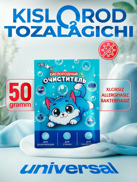 - ЭKO, не содержит хлора - Лучшие свойства многофункциональный кислородный очиститель Syry сохраняет в течение 5-6 часов при растворении в воде с температурой 70-90 ℃ - Подходит для цветных вещей - Кислородный очиститель Syry - Подходит для детских вещей, гипоаллергенный - Кислородный очиститель, пятновыводитель, отбеливатель для белого и удаления желтизны - Дезинфицирует пол, любые другие поверхности дома, очищает ковры - Удаляет жир и нагар, чистит плиту, чистит посуду - Усиливает действие любого моющего средства (порошок, гель) SYRY - это мощный кислородный очиститель, пятновыводитель, отбеливатель и хороший помощник на кухне и ванной. - Кислородный очиститель Syry - Подходит для детских вещей, гипоаллергенный - Кислородный очиститель, пятновыводитель, отбеливатель для белого и удаления желтизны - Дезинфицирует пол, любые другие поверхности дома, очищает ковры - Удаляет жир и нагар, чистит плиту, чистит посуду - Усиливает действие любого моющего средства (порошок, гель) - ЭKO, не содержит хлора - Лучшие свойства многофункциональный кислородный очиститель Syry сохраняет в течение 5-6 часов при растворении в воде с температурой 70-90 ℃ - Подходит для цветных вещей SYRY - это мощный кислородный очиститель, пятновыводитель, отбеливатель и хороший помощник на кухне и ванной. Прекрасно удаляет пятна от ягод, фруктов, травы, овощей, кофе, чая, вина, зелёнки, крови и т. д.