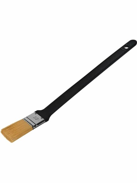 Кисть для радиатора имеет изогнутую форму и предназначена для нанесения красок на водной основе на различные поверхности. Снабжена эргономичной пластиковой ручкой. Волокна сделаны из 100% синтетического шелка. Ободок из нержавеющей стали. Очищается с помощью воды. Содержит переработанный материал. Этот товар изготовлен с применением переработанных материалов. Так мы сокращаем отходы и бережём природные ресурсы. Особенности: ширина — 35 мм; упругая густая щетина белого цвета; универсальный малярный инструмент.