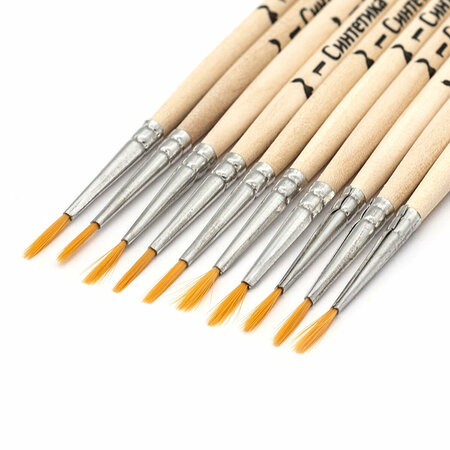Круглые школьные кисточки для рисования от артком специально разработаны для детей и подростков. Кисточки для рисования открывают простор для творчества, с их помощью можно создавать удивительные картины или поделки. Кисть для рисования пригодится для занятий в школе, художественной студии или для творчества на досуге. Круглые кисти от артком подходят для работы с акварелью, гуашью, маслом, темперой, акрилом. Круглые кисточки для рисования набор №1 позволяют рисовать тонкие линии, работать с миниатюрами, прорабатывать отдельные детали. Материал рабочей части кисти – синтетика. Синтетическое волокно по качеству не уступает натуральному: оно прочное, упругое, устойчивое к влаге, не осыпается, волоски ровные и не деформируются. Ручка кисти изготовлена из древесины, гладко отшлифована, имеет оптимальную длину и маркировку размера. Удобная деревянная ручка обеспечивает легкость в работе, позволяя рисовать с комфортом в течение длительного времени. Чтобы кисточки для рисования детские прослужили вам дольше, всегда промывайте их рабочую часть после использования. Не оставляйте кисточки для рисования в воде и другом растворителе даже на короткое время. Размер: №1. Количество в упаковке: 10 штук. Цена за 10 шт.