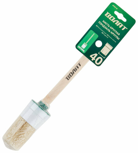 Кисть круглая волат №10 40 мм (10702-40) используется для окрашивания окон, плинтусов, наличников, дверей, ровных и профильных основ, подклейки обоев. 100% натуральная светлая щетина одинарной выварки. Устойчива к сильным растворителям, обладает хорошей краскоотдачей, равномерное распределение краски по окрашиваемой поверхности. Имеет определенные ограничения при применении ЛКМ на водной основе, так как натуральная щетина впитывает в себя воду. Бандаж пластмассовый. Рукоять деревянная с отверстием для подвеса.