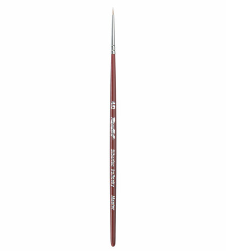 Кисти серии 301Т «Мастер» круглые из хвостового волоса самцов сибирского колонка. Колонковую кисть признанно именуют «королевой» кистей, так как она изготовлена из лучшего пушного волоса. Волос колонка обладает уникальными свойствами - он одновременно длинный, упругий, эластичный и прочный. Волос колонка имеет коническую форму, выпирающее «брюшко» посередине длины волоса, которое заостряется до тончайшего кончика. Кроме того, пучок колонковой кисти состоит из волосков разной длины, которые при соприкосновении наполненной кисти с поверхностью создают капиллярный поток. Имеющая такой волос кисть позволяет работать как с густыми, так и с жидкими красками. Для изготовления кисти используется волос из хвоста. Волос сибирского колонка считается наилучшим. Кисти серии 301Т имеют медную хромированную обойму и короткую бордовую глянцевую ручку из древесины бука, пропитанную лаком. Кисти упакованы в тубу. При работе с ацетоном кисти будут надежно удерживать волос в течение 2-х часов. Номера 10/0-3 используются для создания тонких линий и мелких деталей, 4-6 для нанесения фона и больших деталей. Они подходят для работы с любыми красками: акварелью, гуашью, темперой, акрилом, маслом. Кисти круглые из хвостового волоса самцов сибирского колонка, обойма медная хромированная, ручка короткая бордовая глянцевая. Номера от 0/10 до 3 используются для создания тонких линий и мелких деталей, 4-6 для нанесения фона и больших деталей.