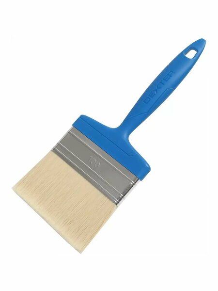 Кисть Стандарт Dexter имеет плоскую форму и предназначена для нанесения красок на водной основе на различные поверхности. Снабжена эргономичной пластиковой ручкой. Волокна сделаны из 100% синтетического шелка. Ободок из нержавеющей стали. Очищается с помощью воды. Содержит переработанный материал. Этот товар изготовлен с применением переработанных материалов. Так мы сокращаем отходы и бережём природные ресурсы. Особенности: ширина — 100 мм; упругая густая щетина белого цвета; универсальный малярный инструмент.