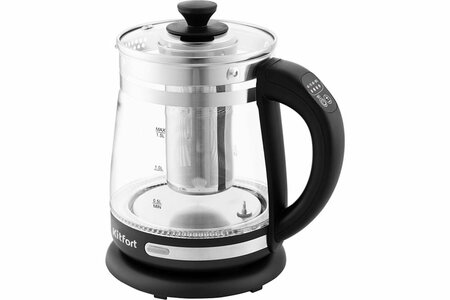 Чайник KITFORT 2 в 1 мощность 1850-2200 вт емкость 1,5 л КТ-656 позволит не только вскипятить воду, но и нагреть ее до температуры 40, 70, 80 и 90 градусов, что удобно для заваривания различных сортов чая, кофе или для приготовления детского питания. Корпус и крышка выполнены из сочетания стекла и металла. Укомплектован подставкой для варки 5 яиц, яйца варятся прямо в чайнике. В комплекте идет специальный фильтр для заваривания чая. Можно заваривать чай прямо в чайнике: нагреть воду, засыпать заварку в фильтр и установить его в чайник. Объем: 1.5 л. Тип управления: механический. Дистанционное управление: нет. Мощность (Вт): 2200. Материал корпуса: металл, стекло. Цвет корпуса: стальной, черный. Палитра: серый. Фильтр в носике: съёмный. Нагревательный элемент: закрытый тэн/дисковый. Температурные режимы: 100 °С. Защита от включения без воды: да. Подсветка воды: да. LED-индикатор работы: да. Диаметр: 16.6 см. Высота: 23.5 см. Вес нетто: 1.2 кг. Тип крышки: съемная. Регулировка температуры нагрева воды: да. Поддержание температуры: нет. Отключение при снятии с подставки: да. Отложенный старт: нет. Мерная шкала: да. Вращение на подставке: да. Звуковой сигнал: нет. Встроенный заварник: да. Рисунок на корпусе: нет. Дисплей: нет. Комплектация: Чайник - 1 шт, Подставка - 1 шт, Подставка для яиц с ручкой - 1 шт, Фильтр для чая - 1 шт, Руководство по эксплуатации - 1 шт, Гарантийный талон - 1 шт, Коллекционный магнит - 1 шт.