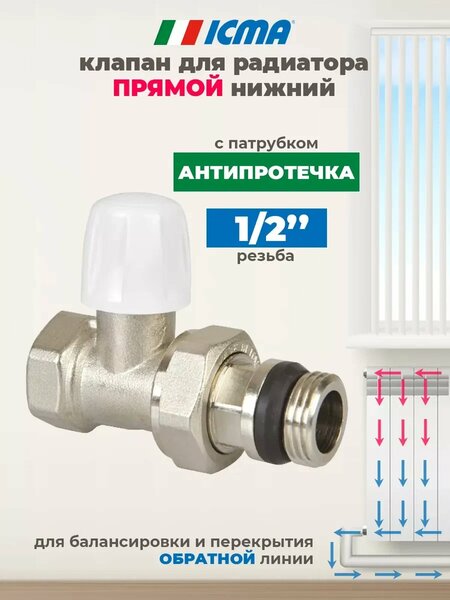 Клапан для радиатора отопления прямой обратный 1/2 Антипротечка – это надежное решение для обеспечения эффективной работы вашей системы отопления. Этот продукт идеально подходит как для установки в новых системах, так и для замены устаревших элементов. Изготовленный в Италии из качественной латуни, он гарантирует долговечность и устойчивость к коррозии, что особенно важно для сантехники. С помощью этого прямого радиаторного крана вы сможете легко перекрыть поток горячей воды, что позволяет эффективно управлять температурой в вашем доме. Клапан оснащен вентилем под плоскую отвертку, который обеспечивает простую и быструю настройку. Он совместим с различными типами труб, включая полипропиленовые, что делает его универсальным решением для любых монтажных работ. При использовании запорного Вентиля для радиатора отопления вы можете быть уверены в его надежности. Резиновое кольцо предотвращает протечки и обеспечивает стабильную работу системы. Его конструкция позволяет легко установить его на батареи отопления, а разъемное соединение позволяет отсоединить радиатор не сливая теплоноситель из системы. Это делает его идеальным выбором для любого дома или квартиры. Кран для радиатора отопления 1/2 Антипротечка – это не просто сантехнический элемент, это важная часть вашей системы отопления, которая обеспечит комфорт и уют в вашем доме. Не упустите возможность улучшить свою систему отопления с помощью качественного и надежного продукта. Закажите его уже сегодня и убедитесь в его преимуществах на практике! внимание! Не используйте шаровые краны для установки с радиаторами отопления, так как подходят для этих целей, только, краны вентильного типа. Любой шаровой кран предназначен для полного перекрывания потока, работает в режиме открыто/закрыто и не предназначен для регулировки потока теплоносителя!