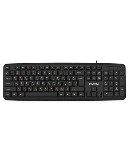 Клавиатура Sven KB-S230 - это простое и надежное решение для тех, кто ценит комфорт и функциональность. Она выполнена в классическом дизайне и оснащена 104 клавишами с мягким ходом, что обеспечивает удобство и точность при наборе текста. Клавиатура оснащена стандартным расположением клавиш, включая двухуровневый Enter и длинные Shift, что делает ее удобной для работы с текстом и вычислениями. Русские буквы выделены красным цветом, что облегчает их поиск. Модель оснащена проводным подключением через USB-интерфейс, что обеспечивает стабильное соединение и позволяет использовать клавиатуру на большом расстоянии от компьютера. Длина кабеля составляет 2 метра, что обеспечивает свободу передвижения. Корпус клавиатуры изготовлен из пластика и обладает повышенной влагоустойчивостью, что позволяет использовать ее в различных условиях. Также предусмотрены отверстия для отвода попавшей внутрь жидкости, что предотвращает ее затекание внутрь. Для максимального комфорта использования клавиатура оснащена регулируемыми ножками, которые позволяют изменять угол наклона и устанавливать клавиатуру под нужным углом. В комплект поставки входит сама клавиатура, кабель для подключения и инструкция по эксплуатации.