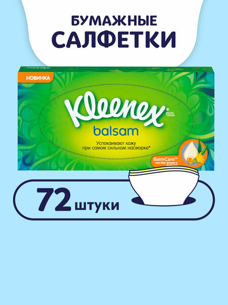 Салфетки бумажные Kleenex Balsam в коробке, 72 шт, 1 упаковка