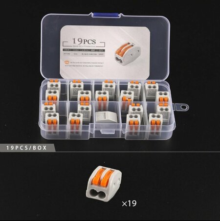 Клеммы для проводов. Контактная часть осуществляется путем зажима проводника пластиной луженая медь. Оборудованные плоско-пружинным зажимом, - удобные и практичные электромонтажные изделия, которые предназначены для соединения проводов тонкого сечения между собой, причем как одножильных, так и многожильных. Изготовленные из полиамида, клемники ваго из пластика считаются самым удобным вариантом выполнения соединительных работ. Самое главное их преимущество – возможность многоразового использования, а также измерение электрических параметров цепи без разбора конструкции. Клеммы соединительные для проводов незаменимы, если необходимо быстро подключить освещение, вентиляционное оборудование, а также бытовые приборы и промышленную технику. Их практически всегда используют профессионалы, которые не понаслышке знакомы со словами «электромонтаж и проводка». Для любителей клемник соединительный тоже подойдет: использовать его просто и легко, даже если вы впервые имеете дело с контактами и собираетесь произвести монтаж проводников в распределительной коробке. Клеммы поставляются в удобном для хранения боксе.