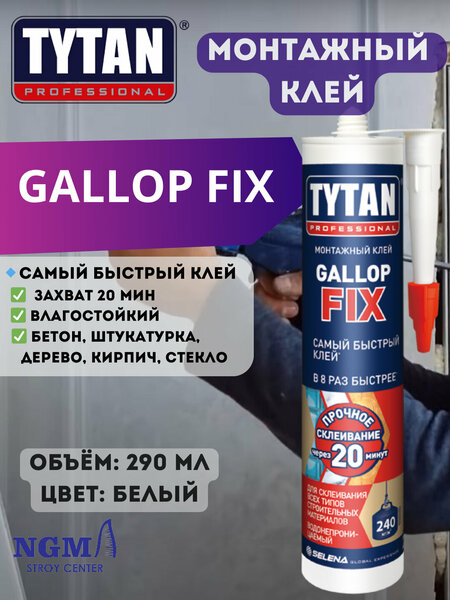 Клей монтажный Tytan Gallop Fix: сверхбыстрый и надежный Быстрота и надежность Клей монтажный Tytan Gallop Fix представляет собой акриловый сверхбыстрый монтажный клей, который характеризуется безумной скоростью начального схватывания. Сила 350 кг/м² достигается уже через 5 секунд после нанесения, что позволяет быстро и надежно закрепить плинтусы, панели и декор. Продукт предназначен для внутренних работ и идеален для использования в жилых и коммерческих помещениях. Цвет и внешний вид Клей Tytan Gallop Fix имеет белый цвет, что позволяет ему гармонично вписываться в любой интерьер и не привлекать лишнего внимания. Преимущества и польза для пользователя Используя клей монтажный Tytan Gallop Fix, вы получаете ряд преимуществ. Во-первых, он обеспечивает быстрое и надежное крепление различных элементов интерьера. Во-вторых, благодаря своей акриловой основе, клей обладает отличной адгезией и долговечностью. В-третьих, белый цвет продукта позволяет ему гармонично вписываться в любой интерьер. В итоге, выбирая клей монтажный Tytan Gallop Fix, вы получаете надежный и быстрый способ крепления различных элементов интерьера, а также стильный и аккуратный вид вашего помещения.