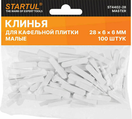 Малый клин для кафельной плитки STARTUL MASTER (ST4402-28) представляет собой незаменимый инструмент для ровной укладки плитки. Основное преимущество этого товара - его функциональность. Малый клин используется без зажимов, что обеспечивает идеальный шов при состыковке. Это гарантирует ровную и аккуратную укладку плитки, а также предотвращает образование щелей и зазоров. Еще одно преимущество товара - его повторное применение. Малый клин можно использовать несколько раз, что позволяет сэкономить на приобретении дополнительных инструментов. Высокое качество пластика, из которого изготовлен клин, обеспечивает его долговечность и надежность в использовании. Ширина шва составляет 6 мм, что позволяет создать ровную и аккуратную поверхность. В упаковке содержится 100 штук клиньев, что делает товар экономичным и удобным в использовании. Малый клин для кафельной плитки STARTUL MASTER (ST4402-28) - это надежный и удобный инструмент для укладки плитки, который обеспечит ровную и аккуратную укладку, а также сэкономит ваши средства и время.