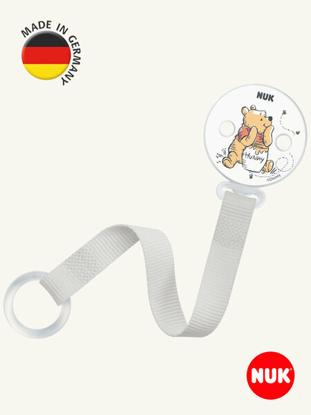 Клипса(держатель) для соски-пустышки с ленточка, Винни Пух белая