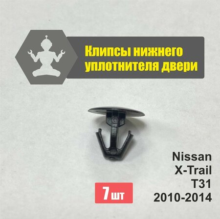 Комплект клипс уплотнителя нижней резинки двери для Nissan X-Trail T31, T32, Nissan Qashqai j10, J11. Качественный аналог! Размер шляпки чуть меньше, чем у оригинала, но клипсы держат отлично! Ниссан Х-Трэйл T31, Т32, Ниссан Кашкай J10, J11. Подходит для 80839JG000, 80838JG000
