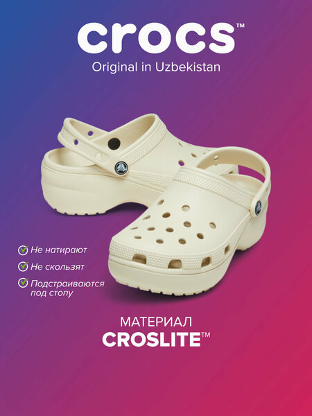 {"widgets":{"@light/ProductM2bEdoOnlyBadge":{"/content/page/fancyPage/defaultPage/m2bEdoOnlyBadge":{"wrapperProps":{"margins":{"top":"2"}},"isM2bEdoOnlyEnable":false}}},"meta":{"/content/page/fancyPage/defaultPage/m2bEdoOnlyBadge":{"name":"@light/ProductM2bEdoOnlyBadge"}},"collections":{"views":{"defaultOffer":"vi_2353785037067796386_bi_12794934119943212613"},"viewItem":{"vi_2353785037067796386_bi_12794934119943212613":{"id":"vi_2353785037067796386_bi_12794934119943212613","composeId":"2353785037067796386","buyOptionId":"bi_12794934119943212613"}},"buyOption":{"bi_12794934119943212613":{"id":"bi_12794934119943212613","title":"Сабо Crocs Classic Platform, размер m5/w7, бежевый","offerId":"PmOcBm7i23Iu5SAG-YXtcg","slug":"klogi","trackingLinks":{"cpa":"/sqLqtlPIxKTEf07M7mY8xxzPvQRr","promotionUrl":"/qA5WbE3bjaxDf498ubuSwrTOaSaR"},"skuId":"4620658453","productId":"1372508901","categoryId":"66042163","navnodeId":"66042169","departmentId":"54432","showUid":"17710624807121584376006001","counterStep":1,"minimum":1,"maximum":10,"price":{"value":989000,"currency":"UZS"},"vendorId":"8339130","feeShow":"OTNDnItfwRMlLJby2gHopR83q8HMwWIGkVrqgVmI1ThoasQnMRRONFIxv4rJZIjMHzgiKxtOTPAstnDP59qWvRpHKvFTl3-xYUhadzMRCqpyf45FBcWLFKaLxp6aoxbQ5GtflBmQhup3uVs9abb086BBCTD4OfCVQ75yo5_ZyrGiIcPr2L4uEWwcu2i16Riy8kfd00pE_SQy15SBloLw3yq41c25jWF-DkoBUVftYInZ0878wY16eZwKZUCwVAvuC68l-fnRjWbQLtwA-MgNNfCy8Hkf0g9fUhsouJyKmRFbWRwVk1UnaywsXFStcGcInlzVvQBkyZ4150jecnvmAQ,,","feedId":"56744528","feedOfferId":"56744528.dcmp-11825438718430173748","shopId":"431782","supplierId":"213460189","businessId":"213460190","supplierName":"Crocs Uzbekistan","businessName":"Crocs Uzbekistan","hasAnySize":true,"hasAnyDelivery":true,"benefitTypeCode":"waremd5","promos":[{"key":"qnMAt4qIJfIsmldjHOyQWg","type":"unknown","shopPromoId":"cf_bp_1000325","anaplanId":"cf_bp_1000325","landingUrl":"https://market.yandex.ru/special/blocking-promo-landing?shopPromoId=cf_bp_1000325"}],"flags":["isVisual","isFbs","isOnDemand","isFashion","isPartialCheckoutAvailable"],"analytics":{"warehouseId":"1905046","paymentType":"ANY","atSupplierWarehouse":true,"paymentMethodTypes":["BY_CARD_ONLINE","BY_CARD_TO_COURIER","IN_CASH"],"deliveryOptions":[{"deliveryType":"delivery","fromDate":1771408080,"toDate":1771408080,"priceInfo":{"value":0,"currency":"UZS"}},{"deliveryType":"pickup","fromDate":1771408080,"toDate":1771408080,"priceInfo":{"value":0,"currency":"UZS"}},{"deliveryType":"pickup","fromDate":1771408080,"toDate":1771408080,"priceInfo":{"value":0,"currency":"UZS"}},{"deliveryType":"delivery","fromDate":1771408080,"toDate":1771408080,"priceInfo":{"value":0,"currency":"UZS"}}],"shopSku":"dcmp-11825438718430173748","placementType":"3P","ownMarketPlace":true,"shopSlug":"yandex-market","yandexBnplInfo":{"enabled":true},"promos":[{"key":"qnMAt4qIJfIsmldjHOyQWg","type":"unknown","shopPromoId":"cf_bp_1000325","landingUrl":"https://market.yandex.ru/special/blocking-promo-landing?shopPromoId=cf_bp_1000325","isPersonal":false,"description":"Отключение магазинов по ID промо от ДЦО. Узбекистан"}],"hypeBadge":{"hasBadgeRare":false}},"deliveryType":"DELIVERY","imageMeta":{"namespace":"mpic","groupId":16490989,"key":"2a000001990e7edcceaa43ac4c7efd4b0cef"}}}}}