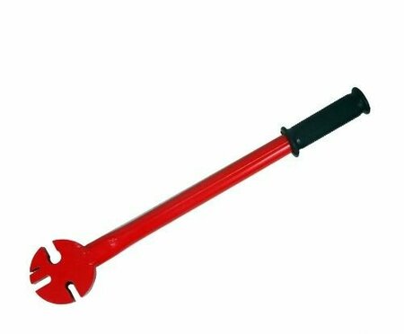Ключ рихтовочный для первоначальной (грубой) правки деформации закраин стальных колесных дисков любого размера. Используется на участках сильной деформации на начальном этапе правки диска. Резиновая ручка похволяет удобно держать ключ в руках. Цвет может быть серым или красным.