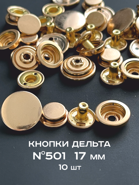 Кнопки для одежды Дельта 501 из латуни 17 мм комплект 10 шт, золотистые