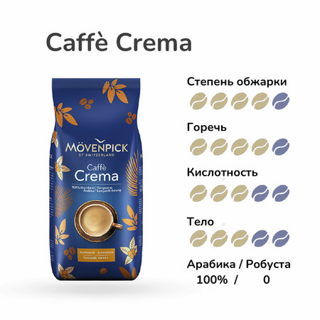 Вид кофе: зерновой; Страна происхождения зерна: Центральная Америка; Страна производитель: Германия; Страна бренда: Швейцария; 100% Арабика; Степень обжарки: средняя; Интенсивность: 4\5; Вес: 1000 гр; Mövenpick Caffè Crema с его насыщенным ароматом можно использовать для приготовления различных кофейных напитков, включая кофе с молоком, кофе с кремом, эспрессо и кофе на основе эспрессо, например, капучино и латте макиато.