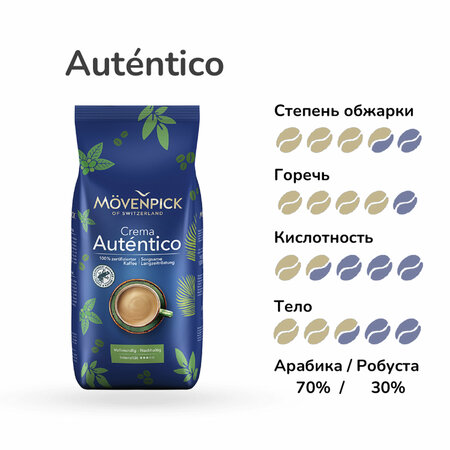 Вид кофе: зерновой; Страна происхождения зерна: Центральная и Южная Америка; Страна производитель: Германия; Страна бренда: Швейцария; 70% Арабика, 30% Робуста; Интенсивность: 3\5; Вес: 1000 г El Autenco от Mövenpick обладает богатым, хорошо сбалансированным вкусом благодаря изысканным, тщательно обработанным кофейным зернам высокогорных районов. Насыщенная смесь идеально подходит как для крема кофе с бархатистой пеной, так и для напитков на основе эспрессо, таких как капучино и латте макиато. Mövenpick El Autenco на 100 % состоит из кофейных зерен с ферм, сертифицированных Rainforest Alliance.