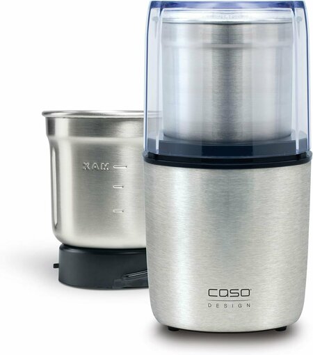 Технические характеристики Система помола ротационный нож Мощность 200 Вт Вместимость 90 г Регулировка степени помола нет Импульсный режим есть Особенности Размеры (ШхВхГ) 10.5 x 20.4 x 10.5 см Вес 1.9 кгДополнительная информация кофемолка 2в1: чаша для измельчения кофе и чаша для измельчения орехов, трав, специйКомпактная кофемолка CASO Coffee And Kitchen Flavour, предназначена для перемалывания кофейных зерен, орехов, мелких специй, лука, круп, что достигается за счет особого расположения острых ножей из нержавеющей стали и импульсного режима работы. Технику также можно использовать для приготовления соусов. Привести устройство в действие можно одним нажатием на крышку (степень измельчения регулируется длительностью нажатия). Объем контейнера на 90 граммов позволяет приготовить 4-8 чашек ароматного кофе для всей семьи или небольшой компании гостей. Данная модель оснащена бесшумным механизмом и издает низкий уровень вибраций, что превращает утренний помол кофе в приятное занятие. Кофемолка CASO Coffee And Kitchen Flavour имеет продуманную функцию безопасности. Если крышка не закрыта плотно, то устройство не включится/не выключится. Благодаря прозрачному исполнению крышки можно отслеживать уровень помола. Съемные чаши из нержавеющей стали с легкостью моются, являются стойкими к механическим повреждениям.