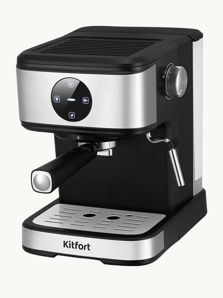 Кофеварка КТ-7219 поможет приготовить кофе эспрессо, капучино или латте, а также множество других видов кофе на ваш вкус. Одна порция готовится 25-30 секунд. Кофе получается восхитительно вкусным, ароматным и с пенкой. На устройстве предусмотрена сенсорная панель управления с четырьмя опциями. Кнопки «Эспрессо» и «Двойной эспрессо» включают приготовление одной или двойной порции эспрессо соответственно. «Пар» включает нагрев бойлера до температуры приготовления пара. Молочную пенку для капучино можно делать самостоятельно. Капучинатор в кофеварке - это паровая трубка с насадкой панарелло. Трубку погружают в холодное молоко, включают подачу пара и взбивают молочную пенку. Приготовление не занимает много времени! Кофеварка оснащена съёмным резервуаром для воды ёмкостью 1,5 литра. Его можно легко снять и наполнить водой в любом удобном месте. Регулятор на боковой стороне кофеварки служит для включения подачи пара и горячей воды. Мерная ложка-темпер, которая идёт в комплекте, служит для того, чтобы удобно насыпать молотый кофе. Обратная сторона поможет утрамбовать в рожке кофейную таблетку. Поддон для сбора капель с решёткой из нержавеющей стали легко снимается, моется и устанавливается обратно. В поддоне установлен поплавок. Если поддон заполнился водой, то поплавок всплывёт выше решётки, это значит, что следует слить воду из поддона. Более того, в комплекте идут рожок, одинарный и двойной фильтры. Они долговечны и не требуют использования каких-либо расходующихся частей.