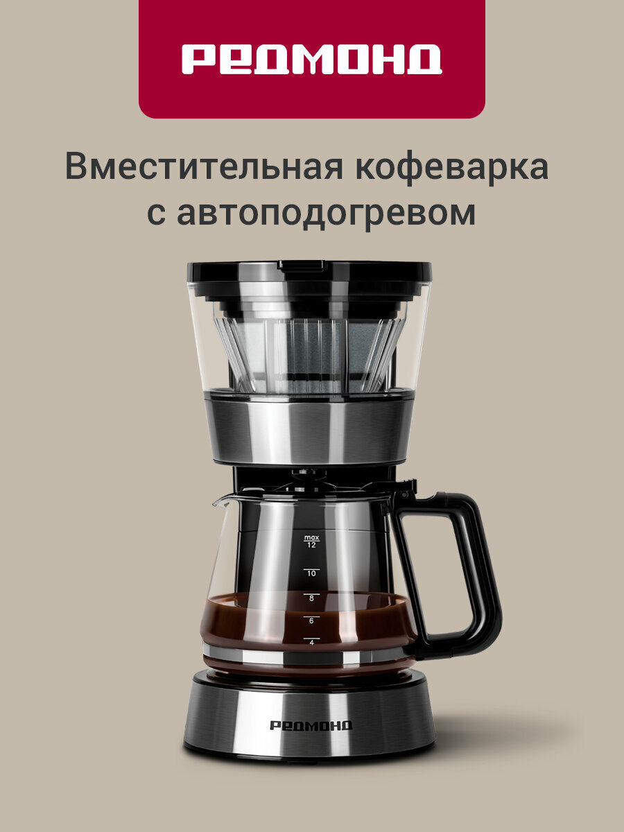 Кофеварка редмонд RMC-M1507 – новинка с безупречным строгим дизайном, само воплощение высокого искусства кофеварения. Технологичная модель предназначена для приготовления кофе капельным методом. Благодаря компактным размерам её можно использовать и дома на кухне, и взять с собой в путешествие. Кофеварка M1507 обладает функцией поддержания температуры, которая позволит сохранить напиток горячим в течение долгого времени. Благодаря противокапельной системе, препятствующей попаданию жидкости на столик с подогревом, можно легко перелить кофе в чашку, не дожидаясь окончания полного цикла приготовления. M1507 имеет прочный кувшин из термостойкого стекла и съёмный многоразовый фильтр. Также в данном приборе предусмотрена возможность использования бумажных фильтров. Вы в полной мере ощутите превосходство этого богатого аромата свежесваренного кофе! Кофеварки редмонд . Крепкая любовь к кофе.