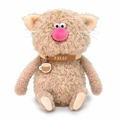 Кофейные коты Budi Basa - Какао (мягкая игрушка 16 см), CCat16-10 Очаровательный котик Какао из тактильно приятного эко меха цвета какао с молоком. Лапки и хвостик из более короткого меха. Усики из шелковистого крученого шнура. Объемный носик обтянут розовым софтом. Глазки из пластика. На пяточках и внутри ушек вшит сливочный софт. На шейке у котика силиконовый чокер с названием и небольшим подвесом в виде чашечки с какао. Чокер легко снимается и может послужить в качестве модного браслета для хозяина.