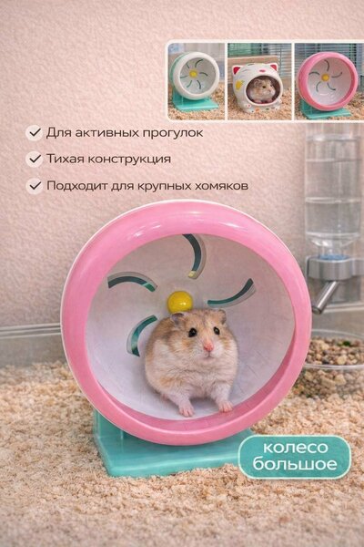 Большое колесо для хомяков — идеальный аксессуар для активного и здорового образа жизни вашего питомца. Подходит для крупных хомяков и просторных клеток.