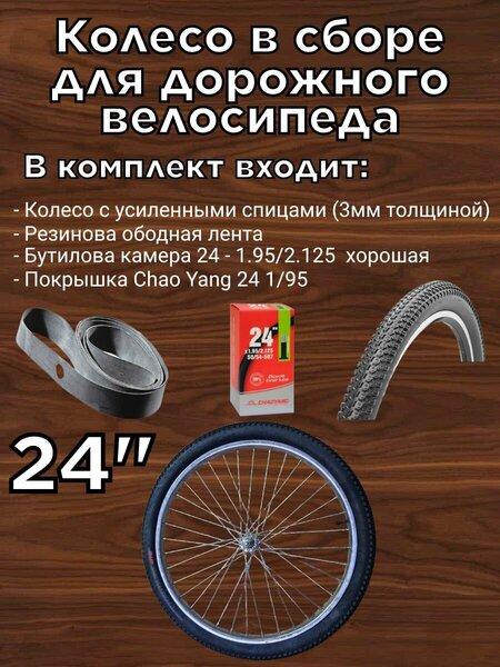 Колесо+покрышка+камера+флиппер 24. переднее металлическое. 36 отверстий под спицы. Усиленное. Толщина спицы 3 мм. Под гайку.