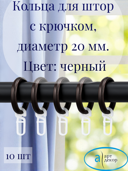 Кольца Арт-Декор для штор с крючком, диаметр 20 мм, черный, 10 шт.