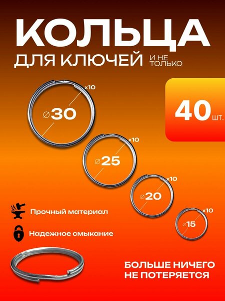 Ищете идеальный аксессуар для ключей? Обратите внимание на кольцо для ключей 40 шт. Этот универсальный элемент станет отличным дополнением для ваших ключей и поможет организовать их в одном месте. Изготовленное из нержавеющей стали, изделие отличается прочностью и долговечностью, что делает его идеальным выбором для повседневного использования. Комплекты представлены в трех вариантах диаметром 15 мм, 20 мм, 25 мм и 30 мм. Наборы по 20 штук, 50 штук и 100 шт. Так же для вашего удобства созданы наборы колец, в которых собраны кольца разного диаметра. Металлические кольца в серебристом дизайне будут полезны в виде заготовок для творчества, для крепления брелока к женской сумке, к детскому или мужскому рюкзаку. Маленькие колечки можно использовать как основу для создания уникального брелока игрушки. С его помощью вы сможете легко собрать оригинальные аксессуары, которые подчеркнут ваш стиль. Это изделие станет замечательным подарком мужчине или женщине на Новый год или день рождения. Наше большое кольцо 40 мм также отлично подходит для создания наборов украшений ручной работы. Если вы ищете подарок брату или другу, этот аксессуар станет отличным выбором. Вы можете собрать целый набор брелков, включая детские варианты, и порадовать своих близких. Кроме того, колечко можно использовать в сочетании с другими элементами фурнитуры для создания уникальных украшений, например, для волос или браслетов. Если вам нужен аксессуар для автомобиля, плоское кольцо 15 мм станет отличным решением. Оно идеально подходит для ключей от машины, а также может быть использовано в качестве основы для других оригинальных идей. Такой подарок будет уместен не только на праздники, но и в качестве приятного сюрприза в будний день. Для тех, кто любит рукоделие, кольцо для ключей 20 мм станет отличной заготовкой для создания уникальных изделий. Используйте его в наборе в комбинации с другими аксессуарами. Это позволит вам реализовать свои творческие идеи и подарить своим близким что-то особенное.