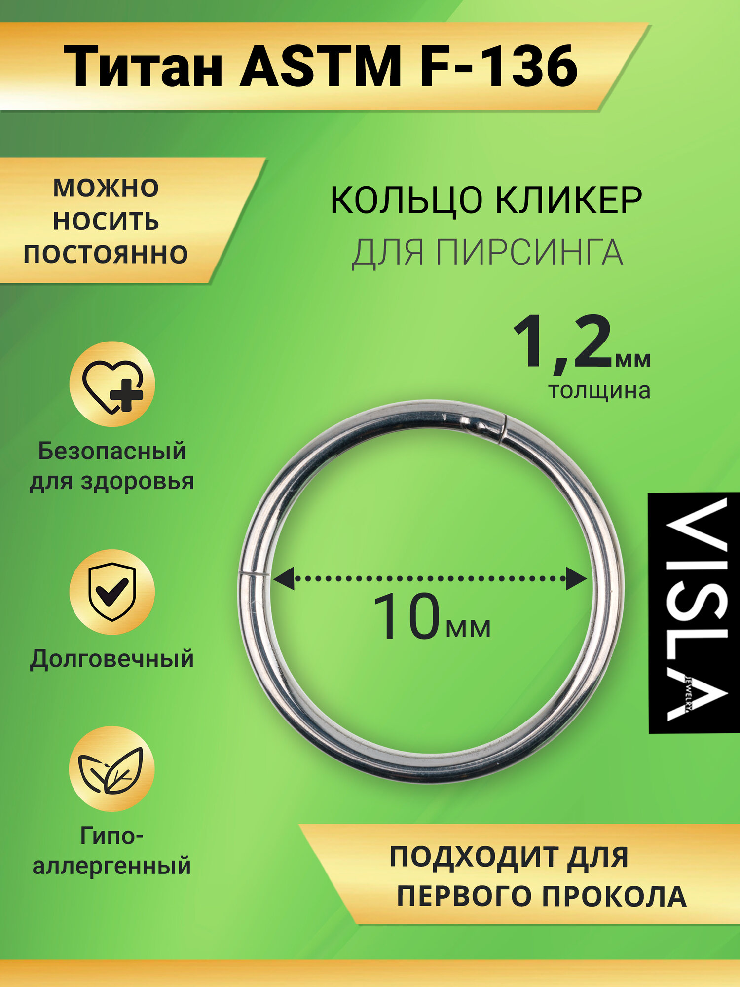 Серьги для пирсинга из титана от бренда Visla Jewelry. Толщина кольца 1,2 мм, диаметр 6,7, 8,9,10,11 или 12 мм Титановое кольцо кликер для базового пирсинга, который подходит всем: девушкам и парням. Классическая моносерьга предназначена для проколов хеликс, трагус , козелок, для прокола крыла носа или септума. Современные сережки для пирсинга возможны в проколах мочек ушей, для проколов брови, конч, рук или пирсинге дейс, септум, подходит для пирсинга губ (смайл). Декоративная сережка для пирсинга дополнит ваш стильный и неповторимый образ. Сегментное кольцо унисекс , можно носить мужчинам и женщинам. Материал абсолютно безопасен для здоровья, не вызывает аллергии и легко приживается в проколе, ведь сплав ASTM F-136 известен как медицинский титан, из которого изготавливаются хирургические инструменты и импланты . Изделия из титана можно использовать для первичных (свежих), а так же в уже заживших проколах. Данный вид пирсинга представлен в натуральном серебристом цвете , без вставок.