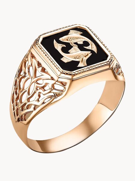 Перстень бижутерия под золото. Максимальная ширина кольца 15,5 мм, средний вес - 6 г. Подойдет для любого возраста. Можно подарить по любому поводу. Позолоченная печатка выглядит солидно и элегантно, будет отличным дополнением и к повседневному и к торжественному образу. Не вызывает аллергических реакций при контакте с кожей, даже при регулярной носке. Не помешает в повседневных делах и легко сочетается с другими украшениями. Покрытие позолотой невозможно отличить от настоящего золотого кольца даже опытному ювелиру. Идеально отполированная поверхность отражает свет и привлекает внимание. Вставка из эмали выглядит стильно и благородно. Печатка с рыбами является знаком жизненной силы. Оно говорит о том, что вы можете всегда защитить себя, своих близких, свою семью и свой дом. Перстень с Рыбами является символом защиты и безопасности. Он означает, что вы защищены от неприятностей как внутри, так и снаружи, а также символизирует интуицию и четкость мышления. Указывает на то, что вы умеете быстро реагировать на изменения внешних условий и принимать верные решения в любой ситуации. Высококачественный бижутерный сплав, который еще называют медицинское золото или дубайское золото, не подвержен ржавчине, не темнеет, не окисляется от воды или пота.