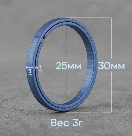 Титановое кольцо для ключей брелоков диаметр 30мм, вес 3г, 1шт Титановое кольцо 30мм: лаконичность и надёжность в деталях. Титановое кольцо (модель «Titanium-Blue-30») — компактный и прочный аксессуар для организации ключей, карабинов и брелоков. Сочетает в себе минималистичный дизайн и высокую функциональность, идеально дополняя повседневный набор EDC (everyday carry). Конструктивные особенности: Материал: титан — гарантирует долговечность, устойчивость к коррозии. Титан также отличается высокой прочностью при минимальном весе. Размеры: внешний диаметр — 30 мм, толщина — 3 мм, ширина грани — 1 мм. Компактные габариты позволяют носить кольцо в любом кармане без дискомфорта. Вес: всего 3г — практически неощутимо в использовании, не утяжеляет связку ключей или снаряжение. Для корректной установки: - слегка разомкните кольцо и сместите в сторону от основной оси, чтобы увеличить зазор; вставьте ключ (или брелок) в расширенное кольцо так, чтобы головка ключа прошла через отверстие; - заведите аксессуар (ключи, брелок) через ребро кольца (как указано на фото галочкой). Чего делать не стоит (отмечено крестиком на фото): - не пытайтесь продеть ключ через кольцо, не расширяя его — это приведёт к тому, что кольцо не закроется полностью или деформируется. Функциональное назначение: крепление ключей от дома, автомобиля, офиса; использование с карабинами для туристического и спортивного снаряжения; организация брелоков и мелких аксессуаров в EDC-комплекте; дополнение к системам крепления мультитулов, фонариков и других компактных инструментов. Преимущества: Лёгкость: благодаря титановому сплаву кольцо остаётся прочным, но при этом весит как перо. Компактность: размер 30 мм делает аксессуар незаметным, но функциональным. Прочность: титан выдерживает значительные нагрузки, не деформируется со временем. Эстетика: лаконичный дизайн и благородный синий оттенок делают кольцо стильным элементом образа. Универсальность: подходит для различных сценариев использования — от городских прогулок до туристических походов. Этот аксессуар сочетает в себе практичность и современный дизайн, становясь незаметным, но важным элементом в организации повседневных мелочей.