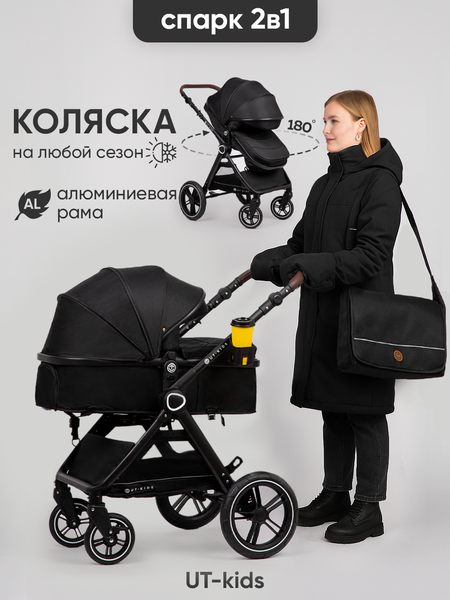 Коляска 2 в 1 для новорожденных, UT-Kids "Спарк", всесезонная, с зимним комплектом, черная