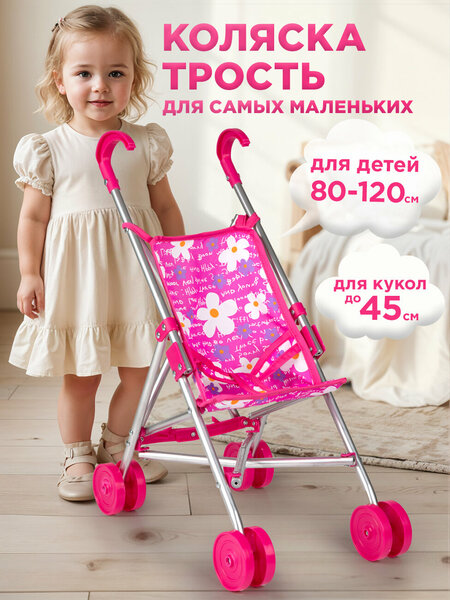 Коляска для кукол трость – это аксессуар для ролевых игр, который поможет ребенку почувствовать себя заботливым родителем или воспитателем для своих игрушек. Благодаря прочному металлическому каркасу коляска детская для кукол устойчива и выдерживает активные игры, а легкий вес позволяет ребенку без труда катать ее дома и на улице. Складной механизм делает хранение удобным: коляска легко помещается в шкаф или багажник машины. ✔ Прочная конструкция – надежный металлический каркас продлевает срок службы игрушки. ✔ Легкость и маневренность – ребенок сможет уверенно управлять коляской. ✔ Компактность – коляска игрушечная для кукол складывается, занимая минимум места. ✔ Простота в уходе – тканевые детали можно снимать и стирать. Игры с кукольной коляской помогают развивать: • Мелкую моторику и координацию – малыш учится управлять коляской, пристегивать ремни безопасности и аккуратно усаживать куклу. • Навыки ролевых игр – играя в заботливого родителя, ребенок развивает воображение и учится проявлять внимание к окружающим. • Организованность и самостоятельность – ребенок ухаживает за игрушками, поддерживает порядок и придумывает игровые сценарии. Характеристики: • Подходит для кукол до 45 см. • Размеры коляски: 48х36х24см. • Пластиковые двойные колеса, диаметр 6,5 см. • Коляска для кукол трость легко складывается для удобного хранения. Кукольная коляска станет любимой игрушкой ребенка. Она подходит для девочек, которые любят играть в семью, ухаживать за куклами и гулять с ними. Компактные размеры позволяют использовать ее как дома, так и на улице