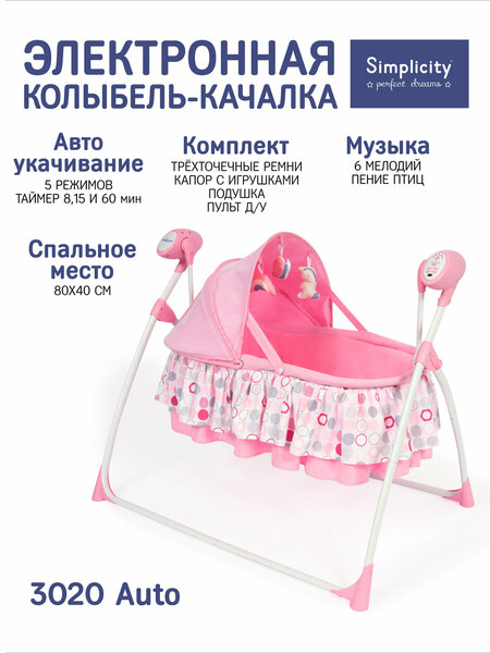 Колыбель детская с системой автоукачивания Simplicity 3020 Auto, Pink Circles