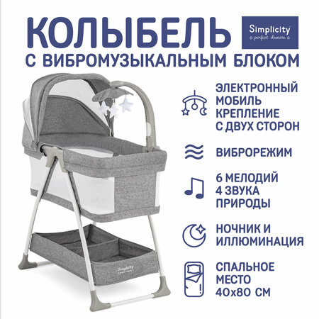 Колыбель Simplicity Classic 3010, с мобилем, с виброукачиванием, серая