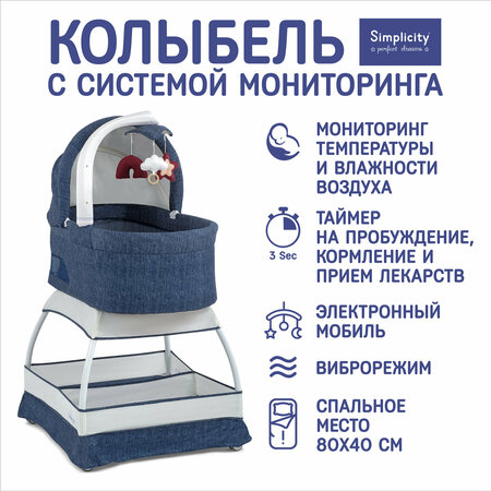 Электронная колыбель Simplicity GL4070 Classic – это современная и стильная кроватка-люлька, созданная для комфортного сна и гармоничного развития малыша с рождения до 6 месяцев. Она объединяет уют традиционной колыбели и возможности современных технологий, помогая родителям окружить ребенка заботой и вниманием. Встроенный датчик температуры и влажности воздуха позволяет контролировать микроклимат в комнате. Вы всегда будете уверены, что малышу комфортно дышать и спать, ведь колыбель подскажет, если воздух стал слишком сухим или жарким. Уникальная функция напоминания о кормлении или медицинских процедурах помогает родителям соблюдать режим. Электронная колыбель напомнит сигналом, когда пришло время накормить малыша или провести важный уход. А ещё в модели предусмотрен удобный цифровой дисплей, с которого легко управлять всеми функциями. Широкое спальное место (80х40 см), высокие бортики (30 см) и мягкая внутренняя отделка делают сон малыша безопасным и спокойным. Благодаря 4 прорезиненным колесам со стопорами колыбель легко перемещается по комнате, оставаясь устойчивой и надежной. Функции для максимального комфорта: • электронный мобиль с игрушками, музыкой и световыми эффектами; • плавный виброрежим с несколькими уровнями; • ночник с мягким свечением и мерцающими огоньками; • встроенный датчик температуры и влажности воздуха для контроля микроклимата; • функция напоминания о кормлении или медицинских процедурах; • удобный цифровой дисплей для управления всеми функциями. Эта электронная колыбель не только убаюкивает малыша, но и помогает родителям быть уверенными, что ребёнку комфортно и безопасно. Simplicity GL4070 Classic — это не просто колыбель, а настоящий помощник в первые месяцы жизни ребёнка.