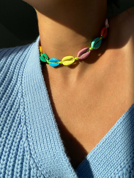 Колье-чокер с ракушками в новой интерпретации! Добавили ярких красок самому популярному украшению по морским мотивам. Украшение собрано на верёвке, размер которой регулируется, благодаря подвижному узлу. Рекомендуем беречь от воды, чтобы сохранить яркие цвета изделия. Брендовый мешочек в комплекте.